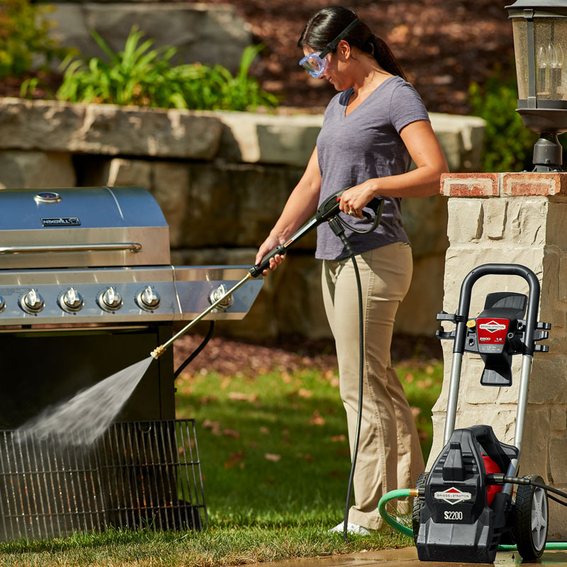 This 2200 PSI pressure washer is a durable, quiet and easy-to-use solution for cleaning patio furniture, vehicles, walkways, and more. You can upgrade your cleaning potential on those stubborn stains by simply adding soap to the detergent foamer or using the Turbo nozzle which can clean up to 40% faster than a standard nozzle.